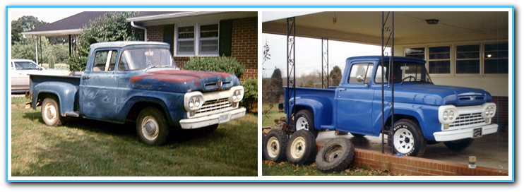 The 1960 Ford pickup was my first restoration project at the age of 15. These are before and after photos.